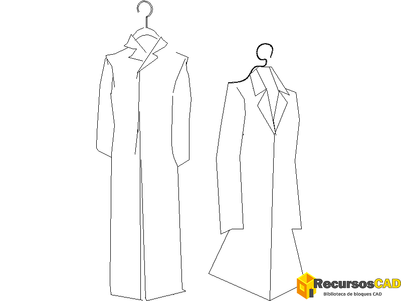 Incluye bloques en vista 2D que representan abrigos y sobretodos colgados, listos para integrar en planos técnicos y proyectos de diseño interior.