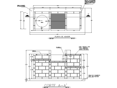 Barbacoa vista en planta y elevación