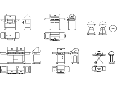 Variedad de bloques DWG de parrillas y barbacoas