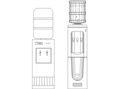 Bloques AutoCAD DWG Dispensador de agua con tanque en vista frontal y lateral
