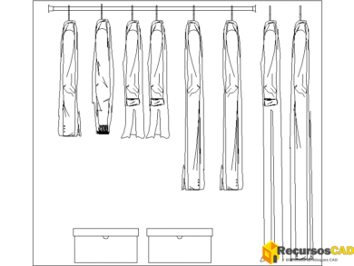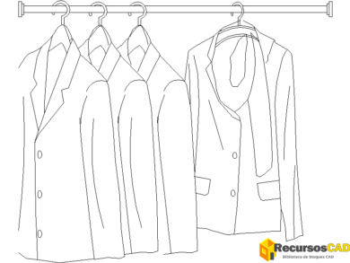 Bloque CAD 2D de ropa en perchero para proyectos AutoCAD